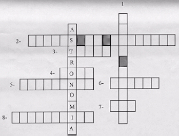 2- O que são constelaçães? 3- É maior Marte ou a Terra? 4- Qual o número de satélites de Marte? 5- Qual o quarto da Lua que vem depois da Lua cheia? 6- Qual o número de satélites de Mercúrio? 7- Qual a estrela mais próxima de nós? 8- É maior o diâmetro polar ou o equatorial da Terra? |